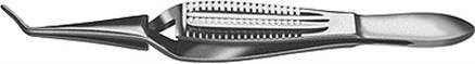 Diseñado para sujetar los tapones esclerales durante la inserción y remoción. El mango de la acción transversal está diseñado para reducir fatiga de la mano mientras se sujeta el enchufe. Longitud total: 104 mm, 4,1 pulgadas.