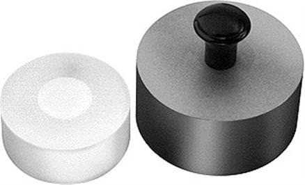 bloque de teflón con cubierta de metal. Se suministra con dos tapones de base reemplazables (E3068). 45 mm Altura total, 1.8 pulgadas.