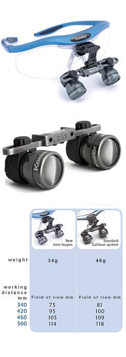 Lupas quirurgicas Keeler Galileo de 2.5X a 42 cm. de distancia de trabajo , no incluyen armazon 2112-P-1007