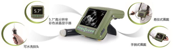 Equipo de Ultrasonido Veterinario digital portatil con un transductos ideal para pequeñas y medianas especies con un transductor sumergible de 3.5 mhz. y estuche de piel