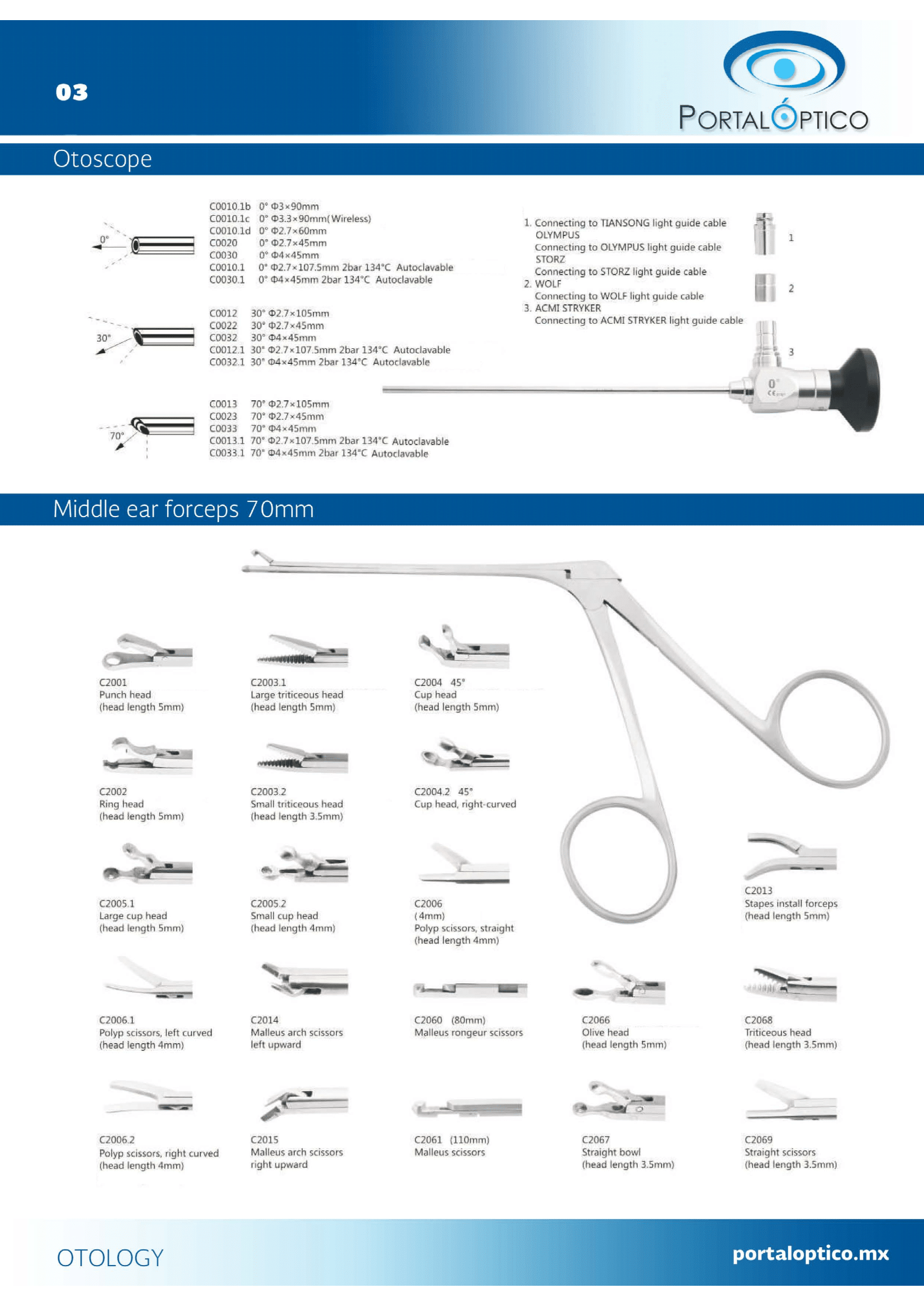 OT-1 Set de Otoscopio completo con pinzas para oido medio
