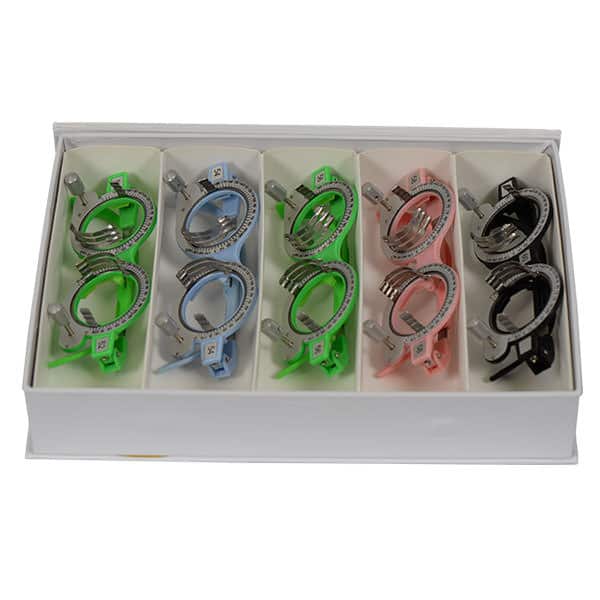Set de monturas de prueba Luxvision con 5 piezas ajustables de 52mm, 54mm, 56mm, 58mm, 60mm.