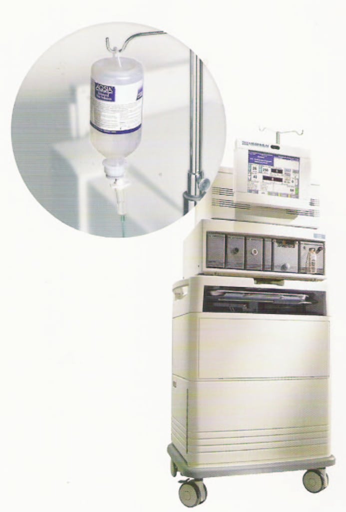 Solucion Salina Aqsia Bausch & Lomb 500 ml con: Sodio 156 mMol/l, Potasio 10 mMol/l, Calcio 3 mMol/l, Magnesio 1 mMol/l, Cloro 129 mMol/l, 300 mOsm/kg y un pH de 7.2