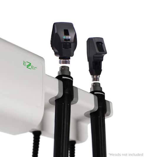 Se incluyen dos mangos con puertos de salida incorporados, que se pueden usar para conectar otros equipos de diagnóstico Ezer o cualquier dispositivo médico compatible (cabezal LED). Cada asa ha sido elaborada con un cable de alimentación rizado, especialmente diseñado que proporciona máxima elasticidad y flexibilidad, lo que le permite al profesional llegar a todos los rincones de la consulta con su equipo.