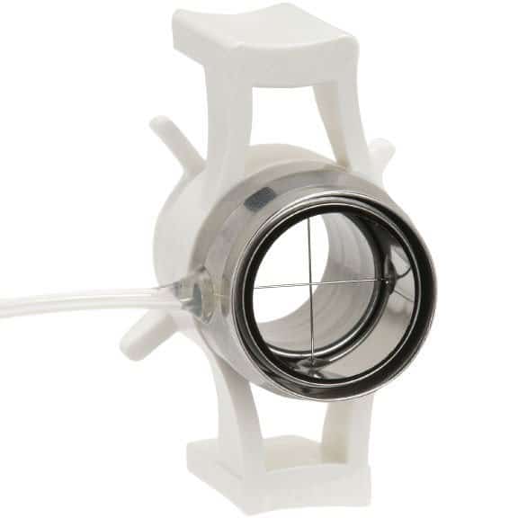El Trepano de Vacío Hessburg-Barron con cámara de aspiración ininterrumpida de 360 ° es el diseño original con más de 28 años de resultados probados. La trépana corneal está diseñada para proporcionar queratotomía completa o parcial para procedimientos de queratoplastia. El sistema es autónomo con su propia fuente de succión y diseñado con retículos que ayudan con centración sobre la córnea.