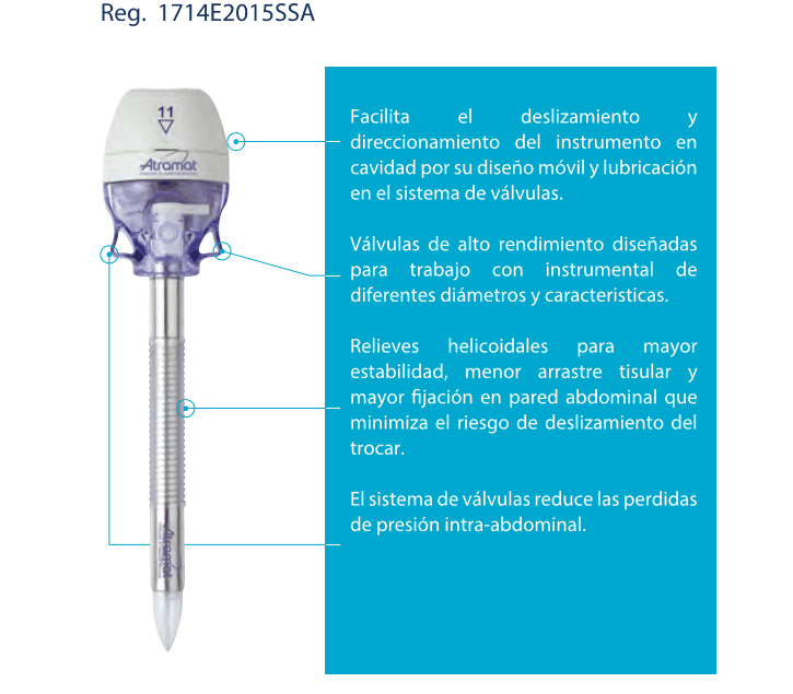 Trocar con hoja plana y cánula 11 mm Estándar descartable, sistema de seguridad ATRAMAT 300-F11-AT
