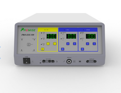 Con tecnología de control de potencia de salida avanzada y precisa, ESU multifunción con máximo 7 modos de trabajo que hacen de la Unidad Electro Quirúrgica Promise de 300 watts PRO-ESU300 la mejor opción para los procedimientos que el medico requiera.